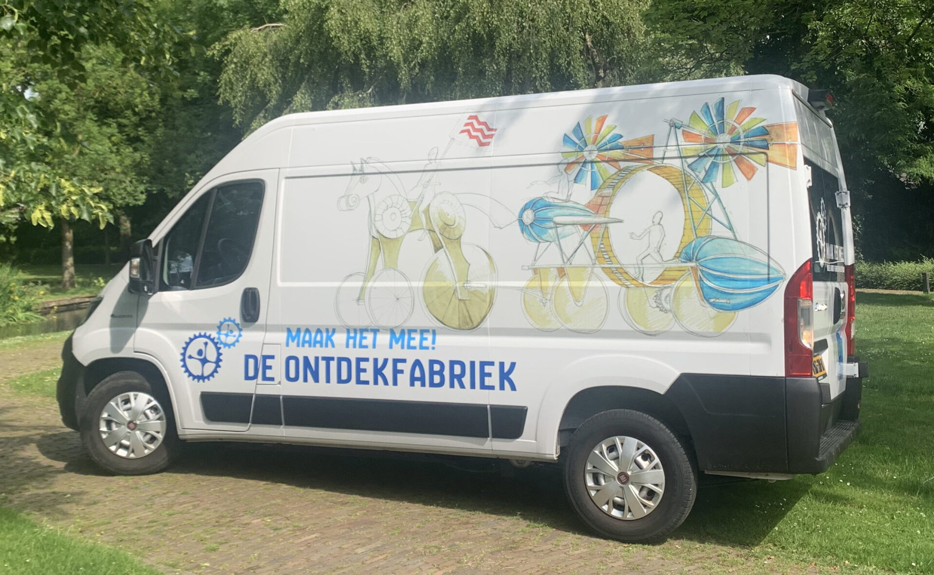 Met onze elektrische makersbus gaan we naar de scholen met de gaafste machines en materialen. Als ‘De Uitvinders’ in de klas komen gaan de kinderharten vanzelf sneller kloppen! Toch behelzen onze lessen meer dan wetenschap en techniek. We werken met storytelling (‘Uitvindersavonturen’) en verrijken de lessen zo nodig op basis van de specifieke leerdoelen van de betreffende groep.