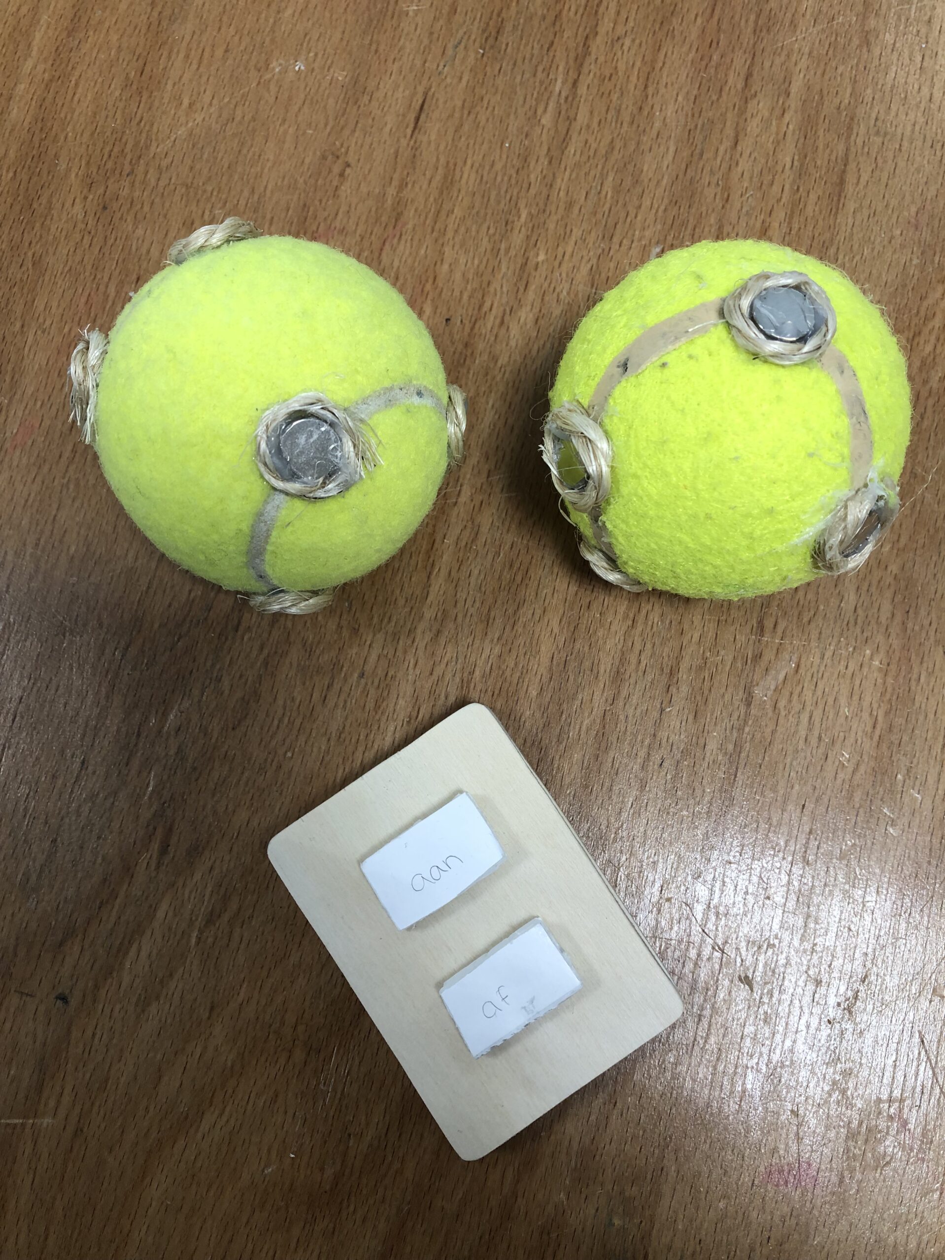 Er zit een elektromagneet in de bal en die is aan de batterij gekoppeld, wanneer je een knop in de afstandsbediening indrukt krijgt de batterij een signaal waardoor de elektromagneet aangaat. De buitenkant bestaat uit rubber en de binnenkant is een tennisbal. Het wordt zo gemaakt dat de tennisbal heel stevig is en goed beschermd is tegen de tanden van een hond, zodat hij niet kapot gaat. De aandrijving zit in de tennisballen. Het product kost €30 per set, dus twee tennisballen en een afstandsbediening.