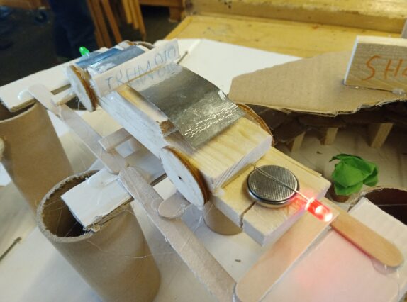 Een moderne shopping hal met een uitklapbaar dak om planten zonlicht te geven en het heeft ook een monorail met licht wat rijdt door zonnepanelen maar kan ook normaal rijden we hebben ook nog gebouwen met zonnepanelen